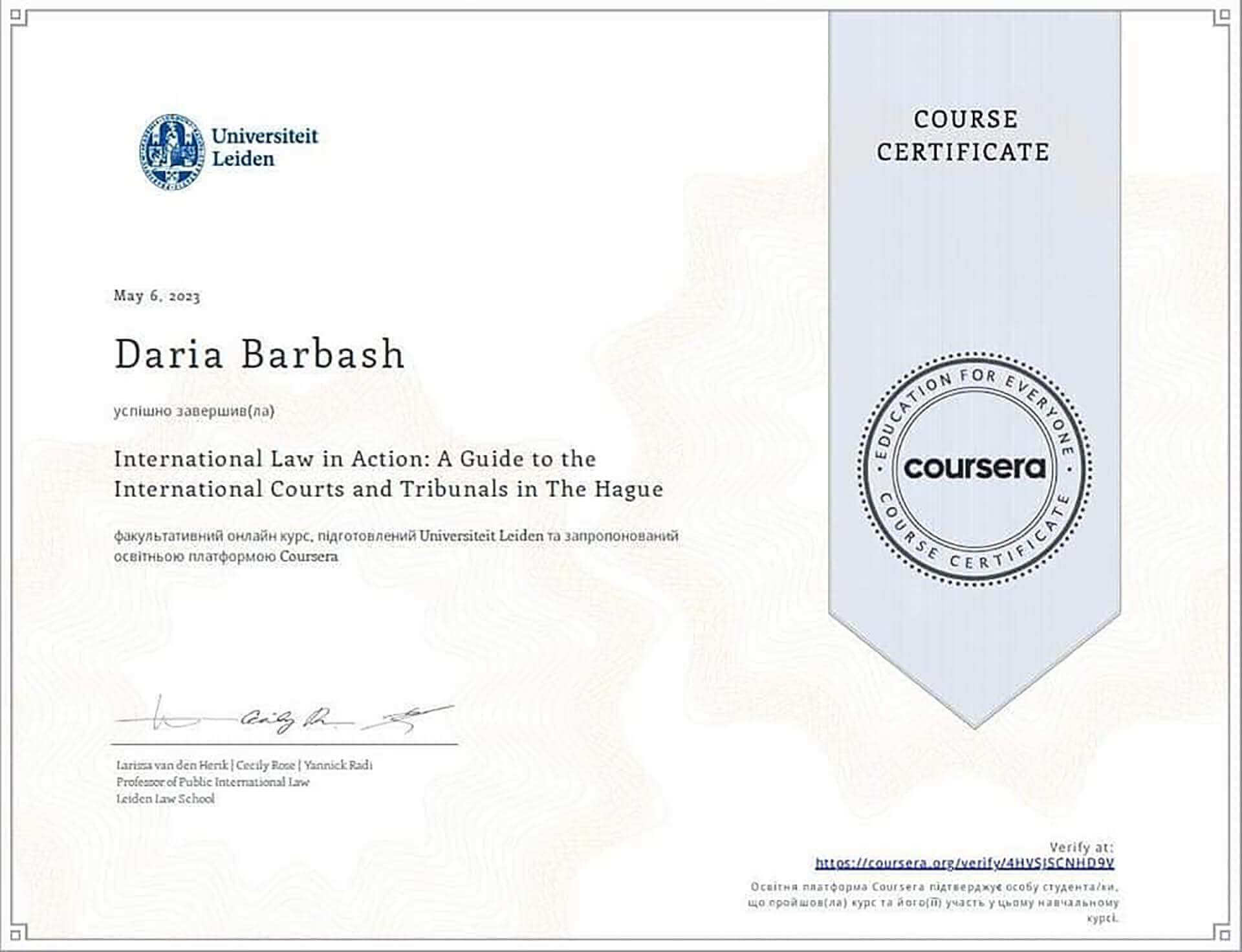 ГоловнаОсвітаПраво (ID 17770)Науковий гурток аспірантів кафедри права «Сучасні доктрини правової науки»Досягнення аспірантів кафедри праваInternational Law in Action: A Guide to the International Courts and Tribunals in The Hague