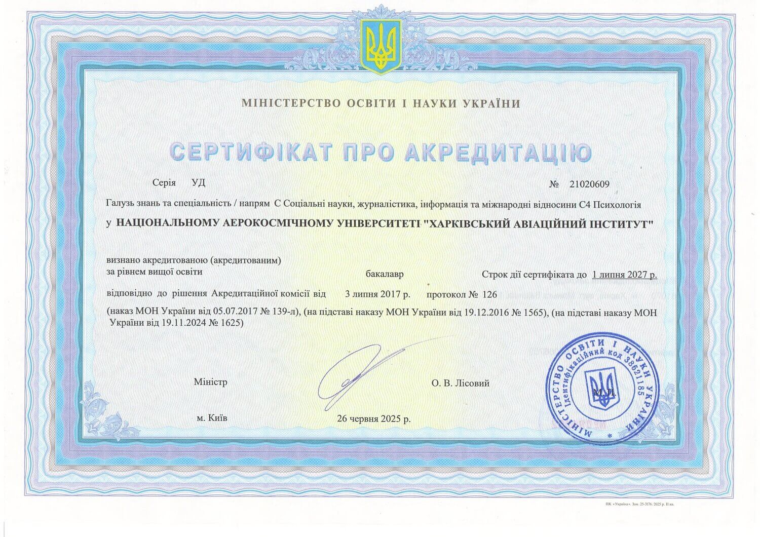 Сертифікати про акредитацію освітніх програм та спеціальностей введених в дію з 2025 року