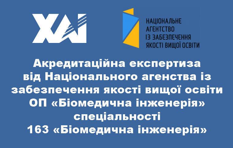 З 28 по 30 березня 2023 року Національне агентство із забезпечення якості вищої освіти проводитиме акредитаційну експертизу освітньої програми «Біомедична інженерія» за спеціальністю 163 «Біомедична інженерія» за першим (бакалаврським) рівнем вищої освіти з використанням технічних засобів відеозв’язку.