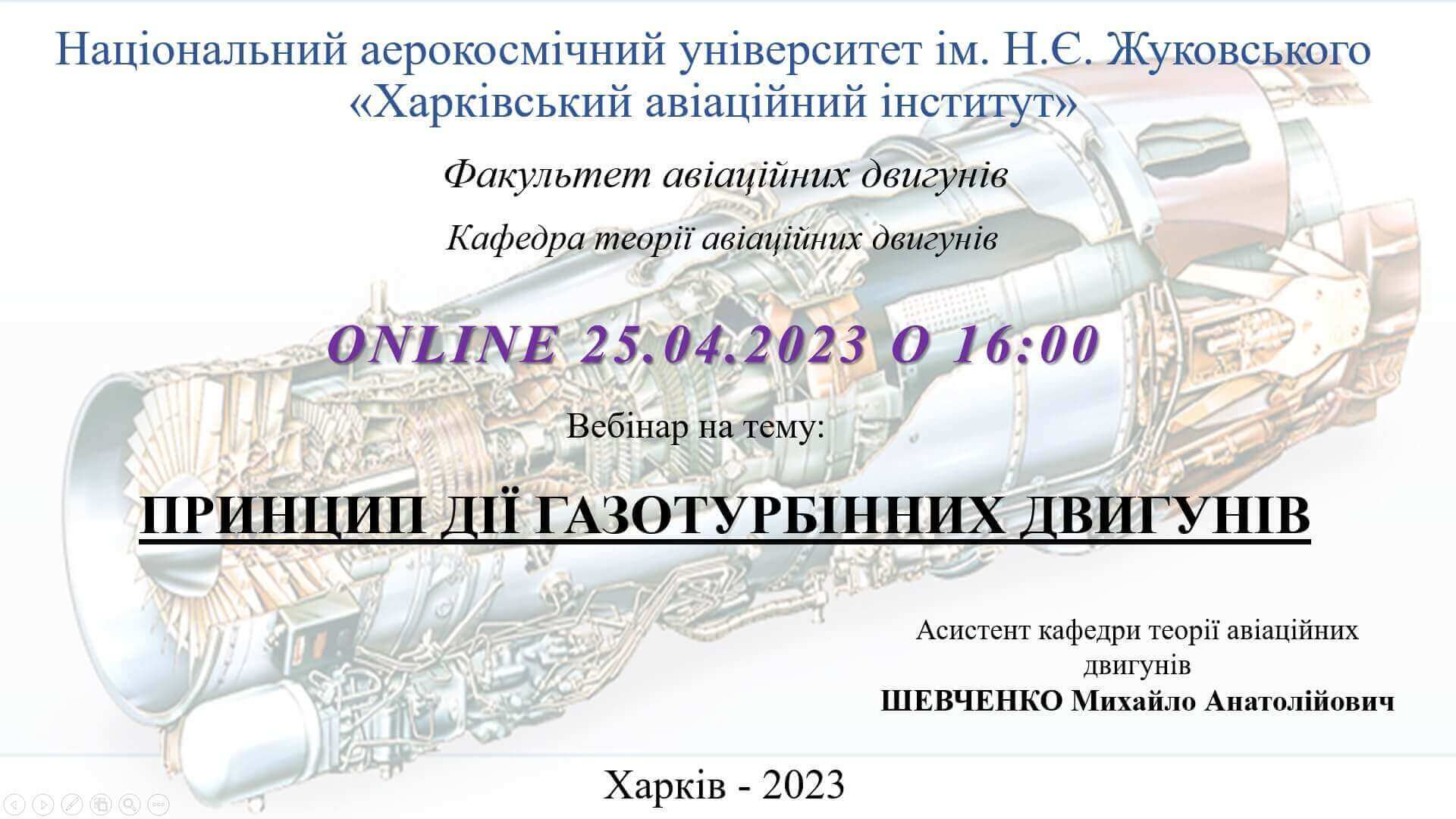 Кафедра теорії авіаційних двигунів підготувала вебінар на тему: “Принцип дії газотурбінних двигунів”