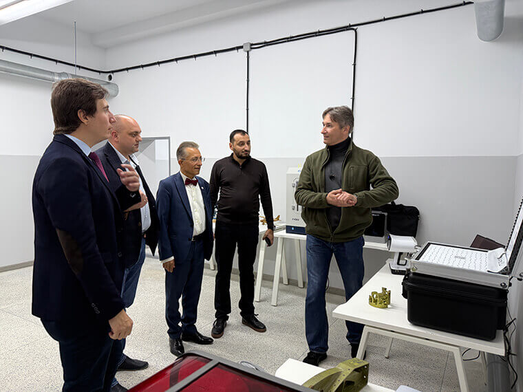 Гості в супроводі проректора з науково-педагогічної роботи та міжнародної діяльності Мікаіла ГАРАЄВА відвідали головний корпус, а також перший і другий факультети, де подивились різноманітні лабораторії та виставкові зали, спілкуючись із деканами щодо подальшої спільної роботи