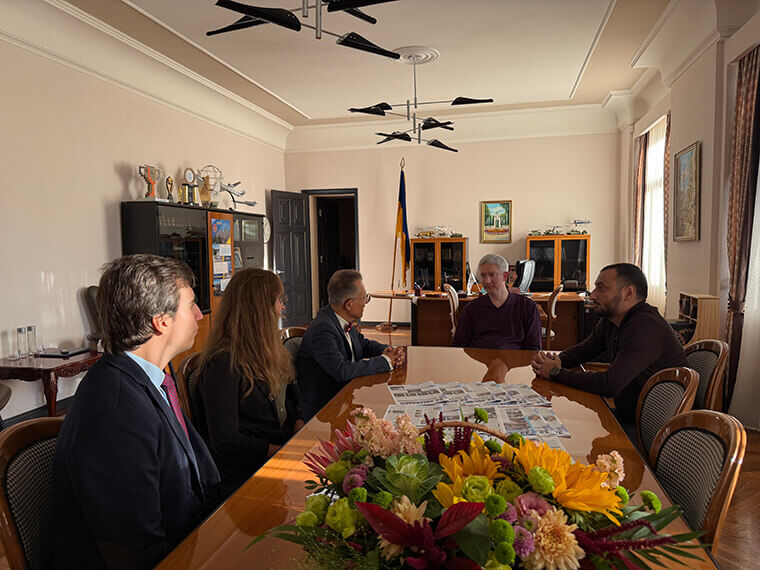 Відбулась також зустріч з в. о. ректора Олексієм ЛИТВИНОВИМ, на якій сторони обговорили подальші конкретні кроки щодо встановлення плідної співпраці як між університетами, так і між ХАІ та SARES у сфері науково-дослідної роботи, проведення спільних симпозіумів та організації публікацій