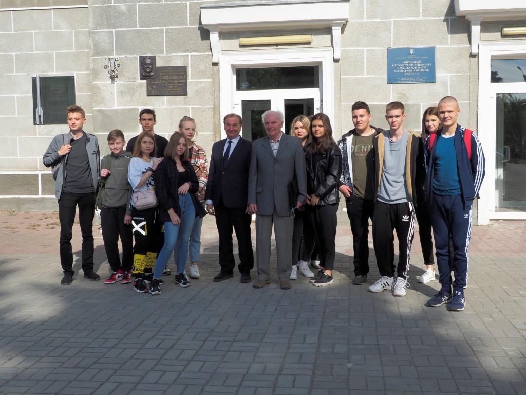 На виході з літакобудівного корпусу школярі несподівано зустрілися з ректором ХАІ Миколою Нечипоруком, який проходив поруч. Він порозпитував молодь про інтереси й сказав кілька слів про діяльність університету.