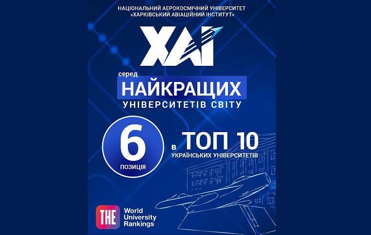 Національний аерокосмічний університет «Харківський авіаційний інститут» утримує позиції в глобальному рейтингу Times Higher Education World University Rankings 2026, увійшовши до групи 1501+ серед університетів світу та посівши 6-те місце серед українських ЗВО.