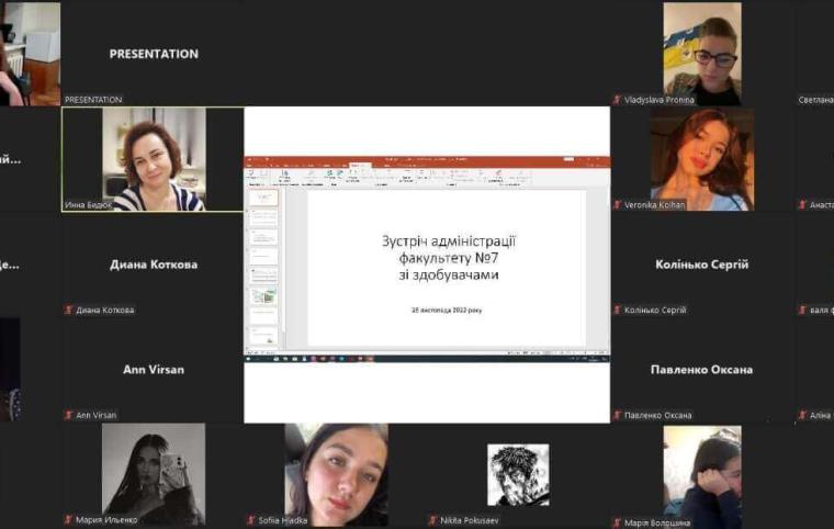 Порядок денний було сформовано шляхом збору актуальних запитань від студентів. Вони були узагальнені й поділені на умовні тематичні блоки: запитання про організацію дистанційного навчального процесу в умовах воєнних дій та відключень електропостачання, про фінансове й стипендіальне забезпечення здобувачів, методичні, комунікативні питання тощо. Обговорення тривало цілих півтори години, але пройшло в невимушеній позитивній атмосфері. Студенти отримали відповіді на питання, а також корисні поради щодо організації наукової діяльності, роботи з науковою та методичною літературою, особливостей життя факультету і університету, отримання зворотного зв’язку та співпраці з викладачами та деканатом.
