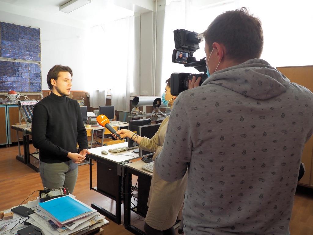 Отже, працівники одного з центральних українських ЗМІ, готуючи матеріал про талановиту молодь, узяли інтерв’ю у наших студентів. Андрій і Даниїл розповіли про те, за яким профілем навчаються, крім того, акцентувалися на участі в наукових проектах кафедр. Кілька слів на камеру також сказали наставники хлопців, зокрема, завідувач кафедри аерокосмічних радіоелектронних систем (№ 501) Семен Жила й декан факультету ракетно-космічної техніки Сергій Губін.