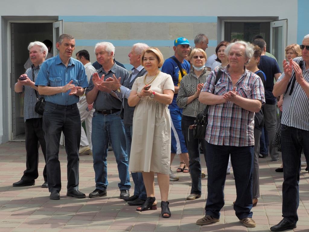 До привітань долучилися голова правління ПрАТ «ФЕД» Віктор Попов головний інженер АТ «Мотор Січ» Костянтин Балушок, а також дизайнер Наталя Бабак, на рахунку якої – роботи над літаками МіГ-17, МіГ-19 та Су-7Б. Крім того, на телефонний зв’язок вийшов випускник ХАІ 1971 року, головний конструктор АТ «Обнинское научно-производственное предприятие «Технология» им. А. Г. Ромашина» Михайло Русін.