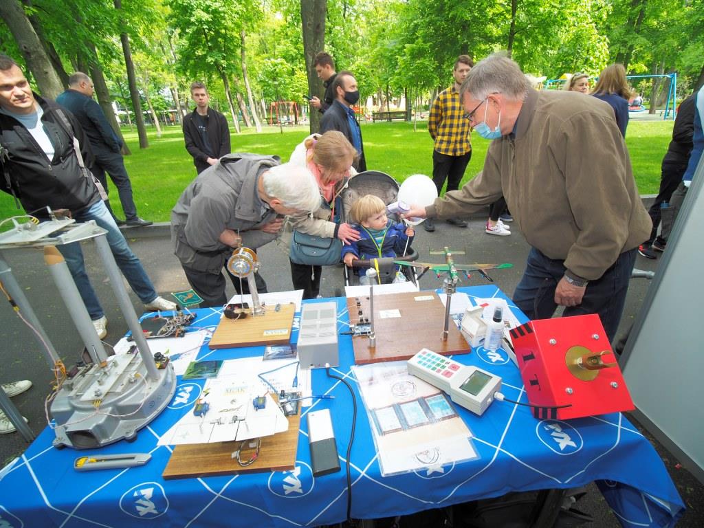 Сьогодні у нас також є і традиційний рекламно-інформаційний стенд, де представлено розробки членів авіамодельного гуртка та студентів. Факультет систем управління літальних апаратів презентує макети, які в мініатюрі демонструють принципи управління складною авіаційною технікою. Факультет радіоелектроніки, комп’ютерних систем та інфокомунікацій привертає увагу розробками кафедри радіоелектронних та біомедичних комп’ютеризованих засобів та технологій», – розповів на виставці начальник відділу доуніверситетської освіти Андрій Маковецький.