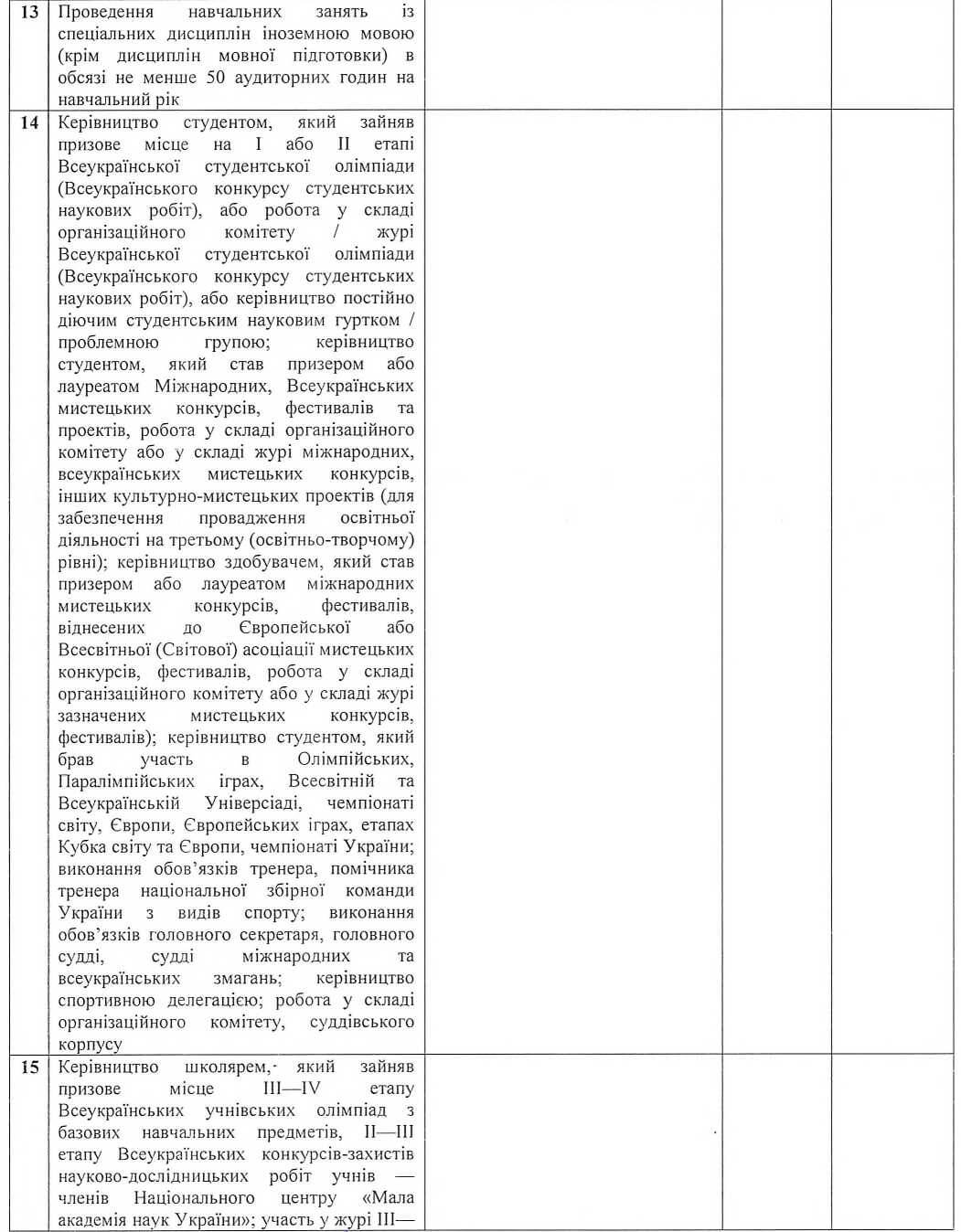- наявність необхідної кількості досягнень у професійній діяльності за останні п’ять років, що визначено Ліцензійними умовами та посадовою інструкцією;
